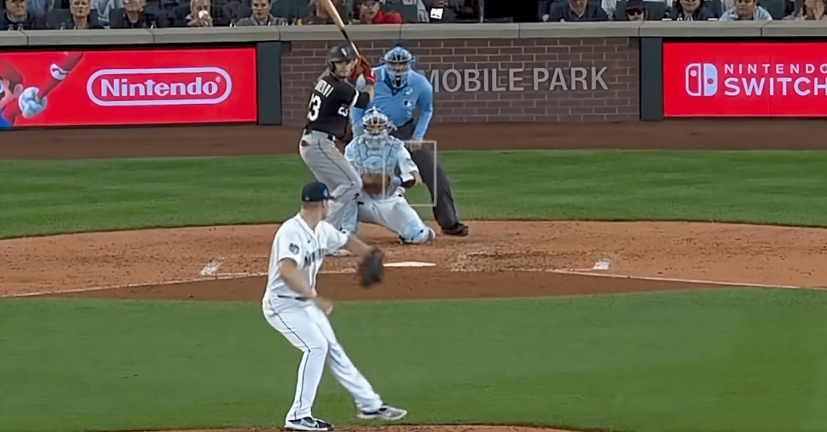 في إحدى مباريات البيسبول بالدوري الأمريكي للعبة، وحينما كان يستعد أحد لاعبي سياتل مارينز لتسديد الكرة. ظهر فجأة إعلان لماريو وهو يحمل مضرب بيسبول.