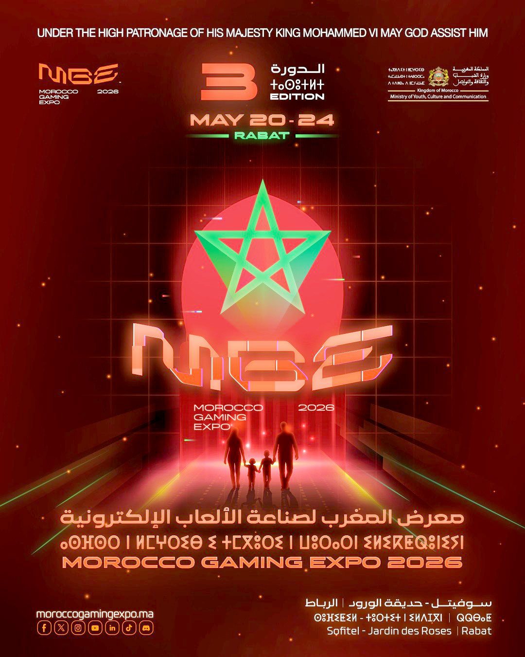 تشهد صناعة الألعاب في Morocco دفعة قوية جديدة مع الإعلان عن النسخة الثالثة من Morocco Gaming Expo، الحدث الذي يعود من 20 إلى 24 ماي 2026 في قلب العاصمة الرباط داخل فندق Sofitel Jardin des Roses. التظاهرة تأتي تحت الرعاية السامية لصاحب الجلالة الملك محمد السادس، وتحت إشراف وزارة الشباب والثقافة، لتؤكد أن المغرب بات لاعبًا جادًا في صناعة الألعاب الإلكترونية على المستوى الإقليمي والدولي.